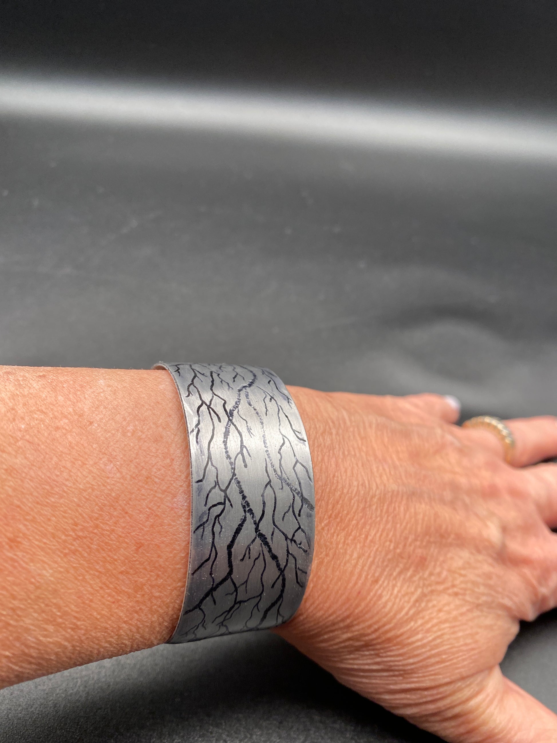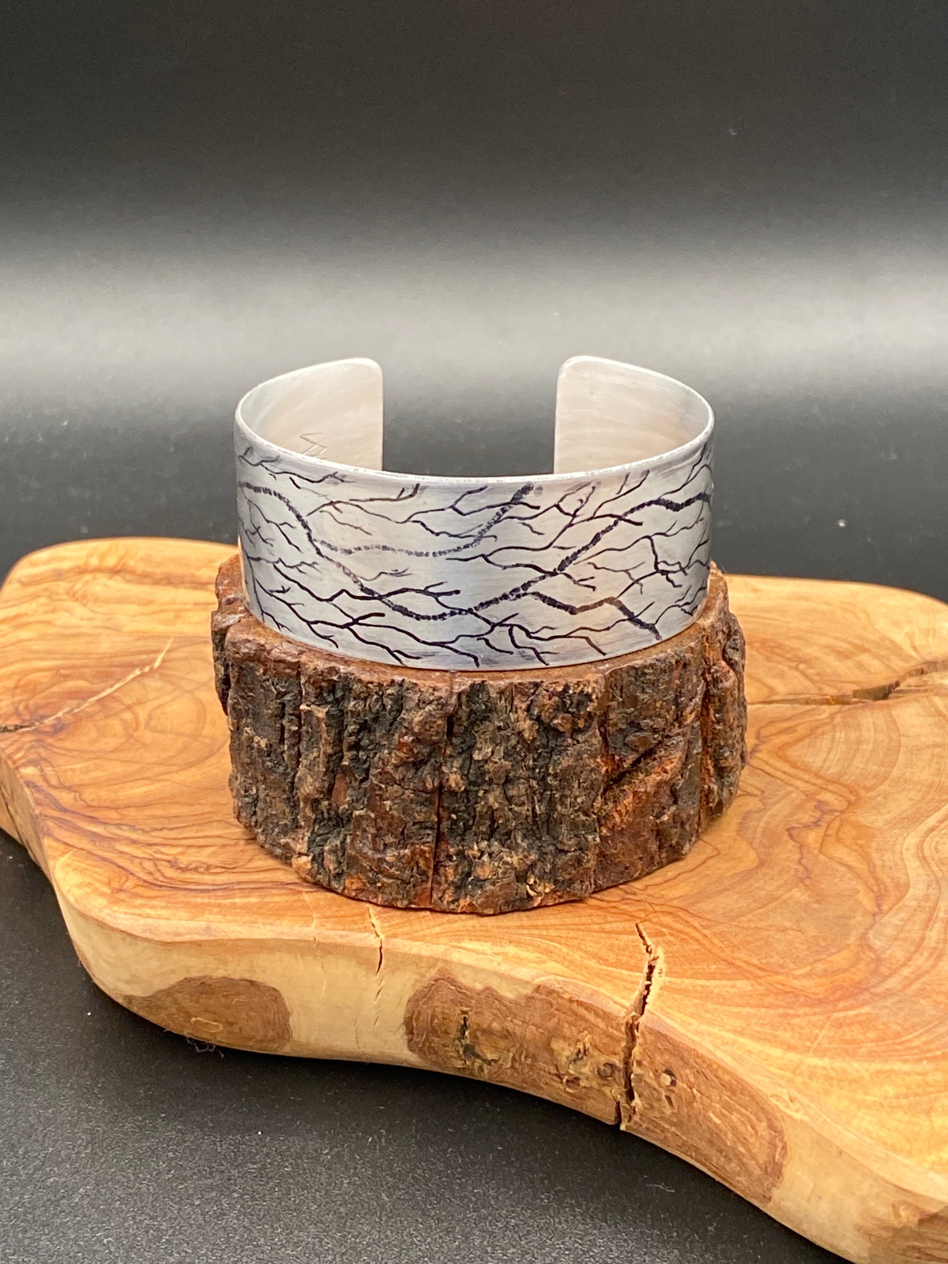 The etchings resemble Tree Branches and each bracelet is a one of a kind due to the etching process.