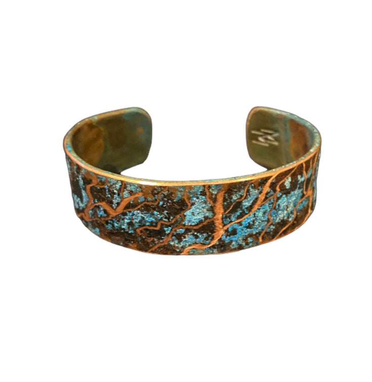 Experience the unique benefits of wearing our Patina Copper Bracelet! Handmade with 99% pure copper. This is from our Fire & Ice collection. A timeless accessory that adds a touch of elegance to any outfit. Whether you're dressing up or dressing down this piece will add a subtle pop of color and sophistication to your look. Copper is believed to have natural healing properties that can benefit your health and well-being. Due to our patina techniques each of our bracelets are one of a kind.