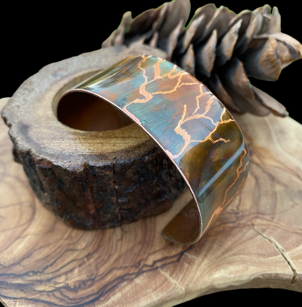 Fire Painted Wide Copper Bracelet